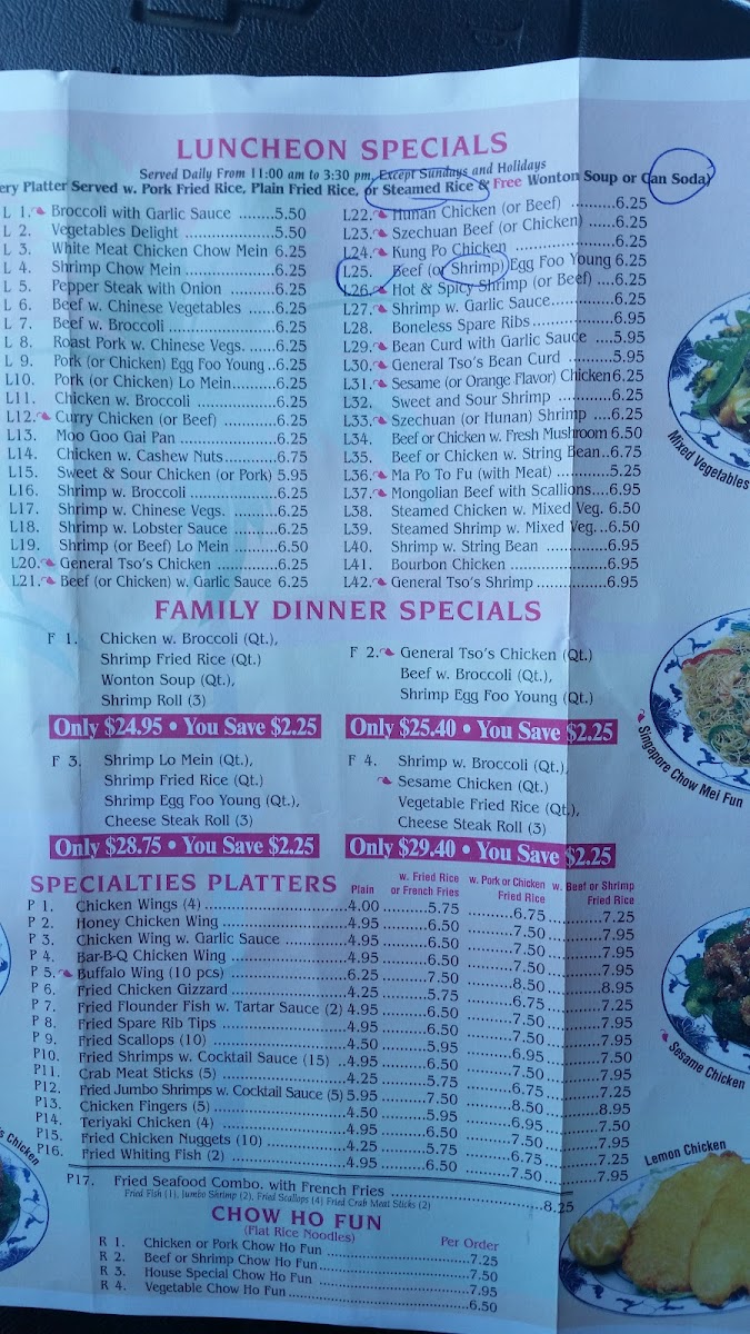 Fans of fried rice will be delighted by options ranging from the classic Plain Fried Rice to the indulgent Lobster Fried Rice, alongside a unique House Special that combines shrimp, chicken, and pork. Don't miss the Yat Mein offerings, which deliver satisfying flavors with choices like Plain or House Special Yat Mein.